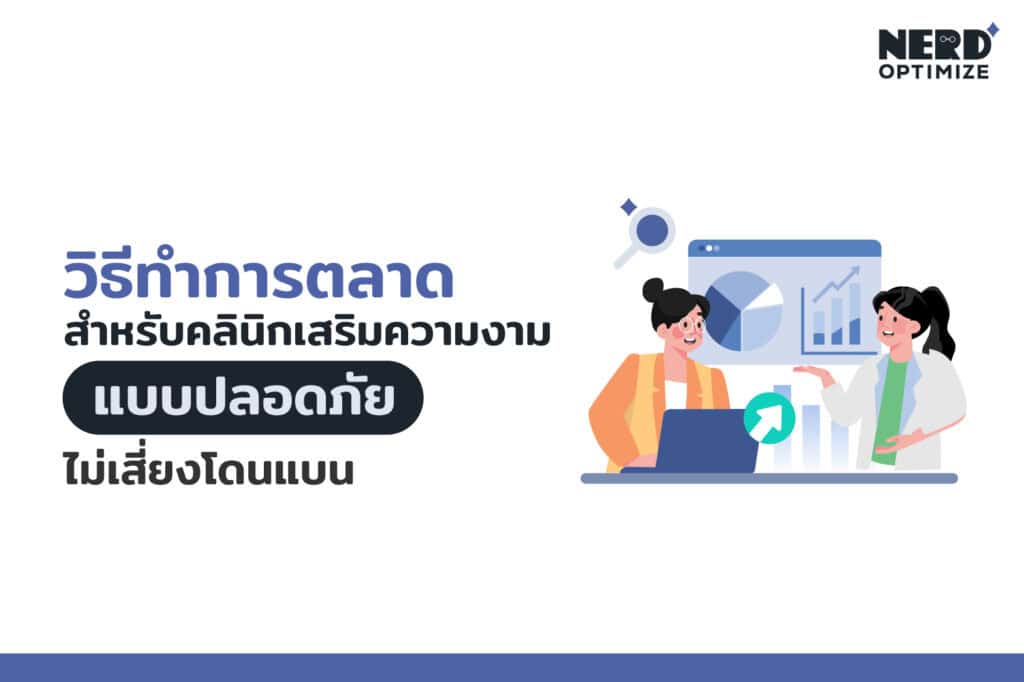 ทุกวันนี้ความมั่นใจของคนเรามี ‘รูปร่างและหน้าตา’ เข้ามาเป็นตัวช่วยเสริม แน่นอนว่าเทรนด์ความงามจึงเป็นสิ่งที่อยู่ในความสนใจของผู้คนอยู่เสมอ และการมองหาตัวช่วยจากผู้เชี่ยวชาญอย่างการใช้บริการคลินิกเสริมความงามจึงเป็นตัวเลือกอันดับต้นๆ สำหรับหลายคน เมื่อความต้องการพุ่งสูง การแข่งขันในตลาดธุรกิจความงามจึงดุเดือดตามไปด้วย จนหลายแบรนด์เลือกใช้เทคนิคการตลาดที่สุ่มเสี่ยง เช่น การโฆษณาเกินจริง หรือการทำคอนเทนต์ที่ผิดกฎแพลตฟอร์ม จนทำให้โดนปิดกั้นการมองเห็น ซึ่งผลลัพธ์ที่ตามมาไม่ใช่แค่ยอดการมองเห็นที่ลดลง แต่ยังทำลายความเชื่อมั่นที่ลูกค้ามีต่อแบรนด์ไปอย่างน่าเสียดาย เพื่อให้ธุรกิจของคุณเดินหน้าต่อได้อย่างมั่นคง NerdOptimize จึงได้รวบรวม 10 กลยุทธ์การตลาดที่ผ่านการพิสูจน์แล้วว่าเห็นผลจริงสำหรับคลินิกเสริมความงามมาฝากกัน เพื่อให้การสร้างแบรนด์ธุรกิจด้านความงามของคุณมีความน่าเชื่อถือในระยะยาว และการบริหารจัดการความสัมพันธ์กับลูกค้าอย่างมืออาชีพแบบไม่เสี่ยงโดนแบน **Highlight ** ## 10 กลยุทธ์การตลาดสำหรับคลินิกเสริมความงาม นี่คือ 10 กลยุทธ์การตลาดสำหรับคลินิกเสริมความงามที่ NerdOptimize รวบรวมและวิเคราะห์มาให้ครบในหลายแง่มุม ซึ่งจะมีรายละเอียดเป็นยังไงบ้างตามไปดูพร้อมๆ กันเลย! ### 1. ศึกษากลุ่มเป้าหมาย ใช้ AI ช่วยจัด Customer Segment การเข้าใจลูกค้าหรือ Customer Insight ถือเป็นจุดเริ่มต้นที่นำไปสู่ความสำเร็จสำหรับทุกธุรกิจ โดยเฉพาะในอุตสาหกรรมความงามที่มีการแข่งขันสูง การทำ Customer Segmentation หรือการแบ่งกลุ่มเป้าหมายให้ชัดเจนจึงเป็นกลยุทธ์ที่ช่วยให้คุณสื่อสารได้แม่นยำและเข้าถึงใจลูกค้าได้แบบไม่หว่านแห ในปัจจุบัน เราสามารถยกระดับการวิเคราะห์ข้อมูลให้เหนือชั้นขึ้นด้วยการนำ AI Solutions เข้ามาช่วยจัดกลุ่มลูกค้าได้อย่างมีประสิทธิภาพ ตัวอย่างเช่น การใช้ AI วิเคราะห์สภาพผิวเชิงลึก หรือการจำลองผลลัพธ์หลังทำหัตถการ เพื่อตอบโจทย์ความต้องการเฉพาะบุคคลแบบ Hyper-Personalized Marketing นอกจากนี้ การนำข้อมูลจากระบบหลังบ้านมาทำ Data Analysis ยังช่วยให้คลินิกจำแนกกลุ่มเป้าหมายได้คมชัดยิ่งขึ้น เช่น กลุ่ม Gen Z ที่มักเข้ามารับบริการด้วยปัญหาสิวและต้องการงานผิวที่เรียบเนียน ในขณะที่กลุ่มวัยทำงาน มักมีความกังวลเรื่องริ้วรอยและต้องการการยกกระชับ ซึ่งการแบ่ง Segment ที่ชัดเจนเช่นนี้ จะช่วยให้คลินิกสามารถออกแบบโปรโมชั่นและวางแผนการสื่อสารได้ตรงจุด ### 2. เริ่มต้นที่ SEO ต่อยอดไปที่ Local SEO และ GEO การทำ Search Engine Optimization หรือ SEO คือการเปลี่ยนเว็บไซต์ให้กลายเป็นพนักงานขายที่ทำงาน 24 ชั่วโมง โดย